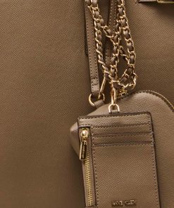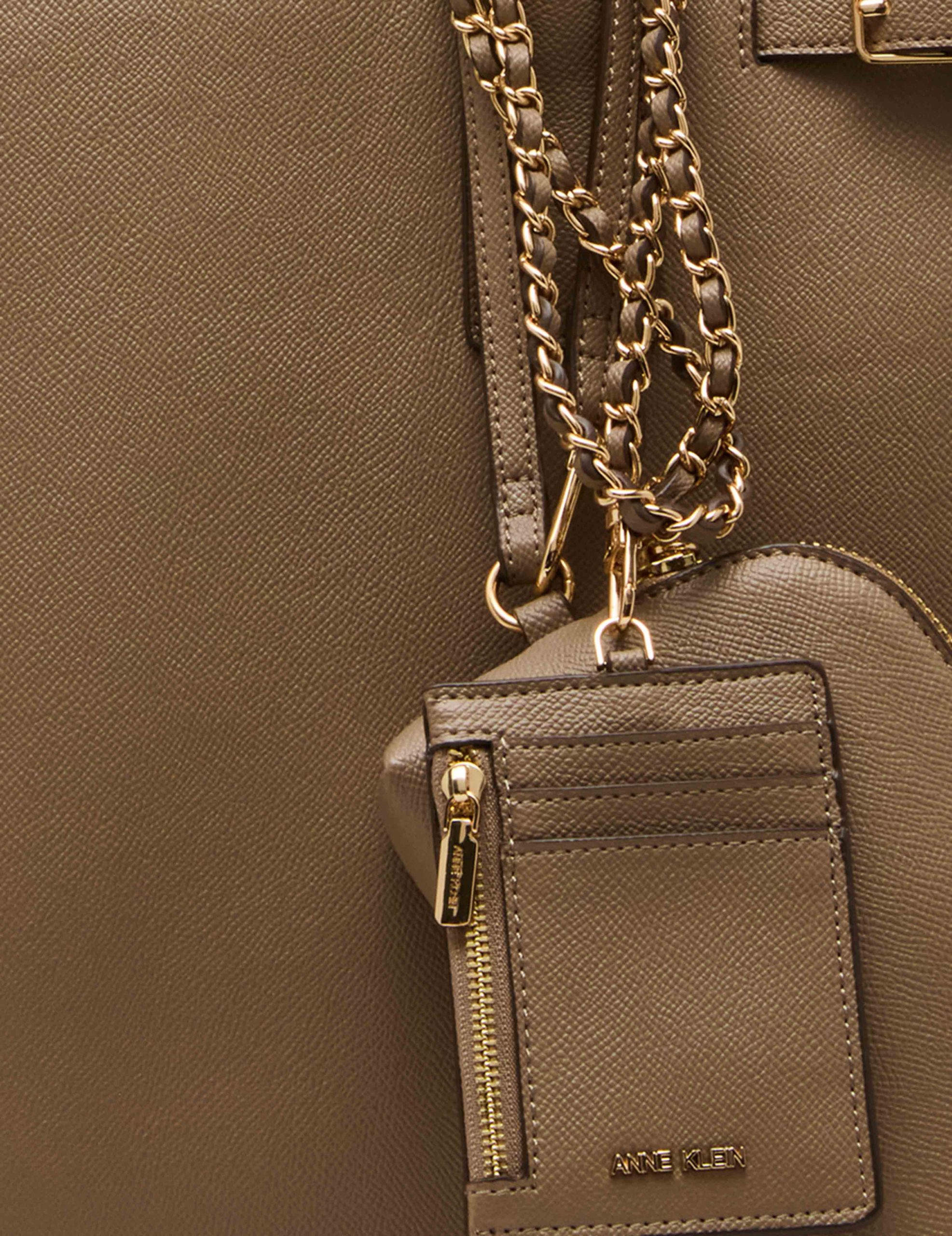 - The work tote includes a convertible strap that can be adjusted to a max length of 24″. Comes with a detachable pouch and eyeglass case.