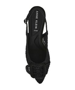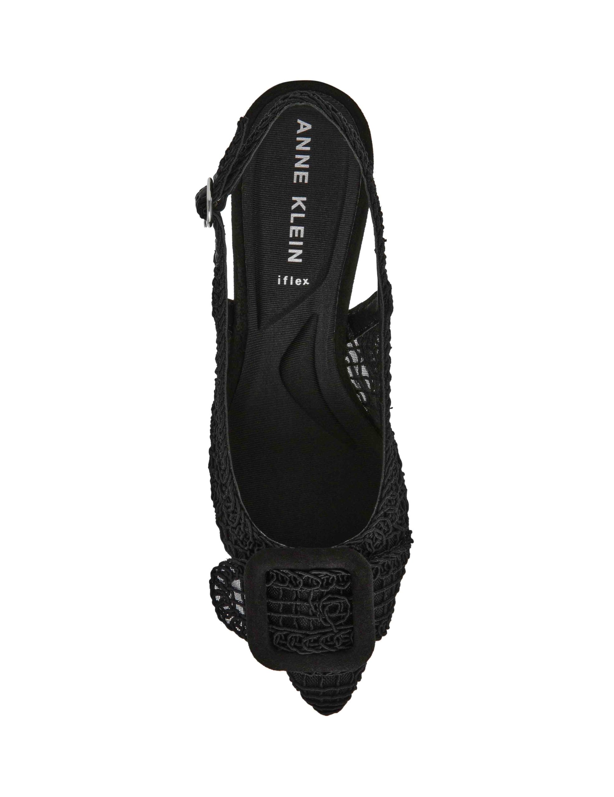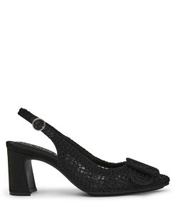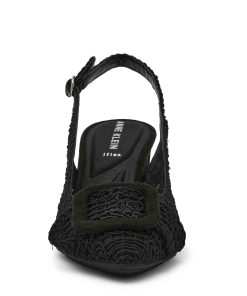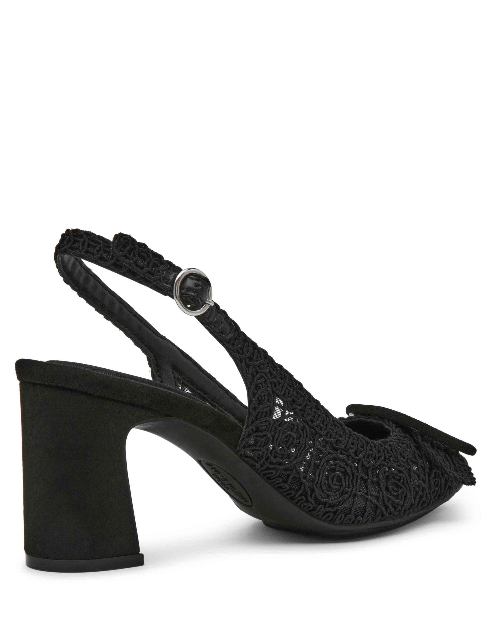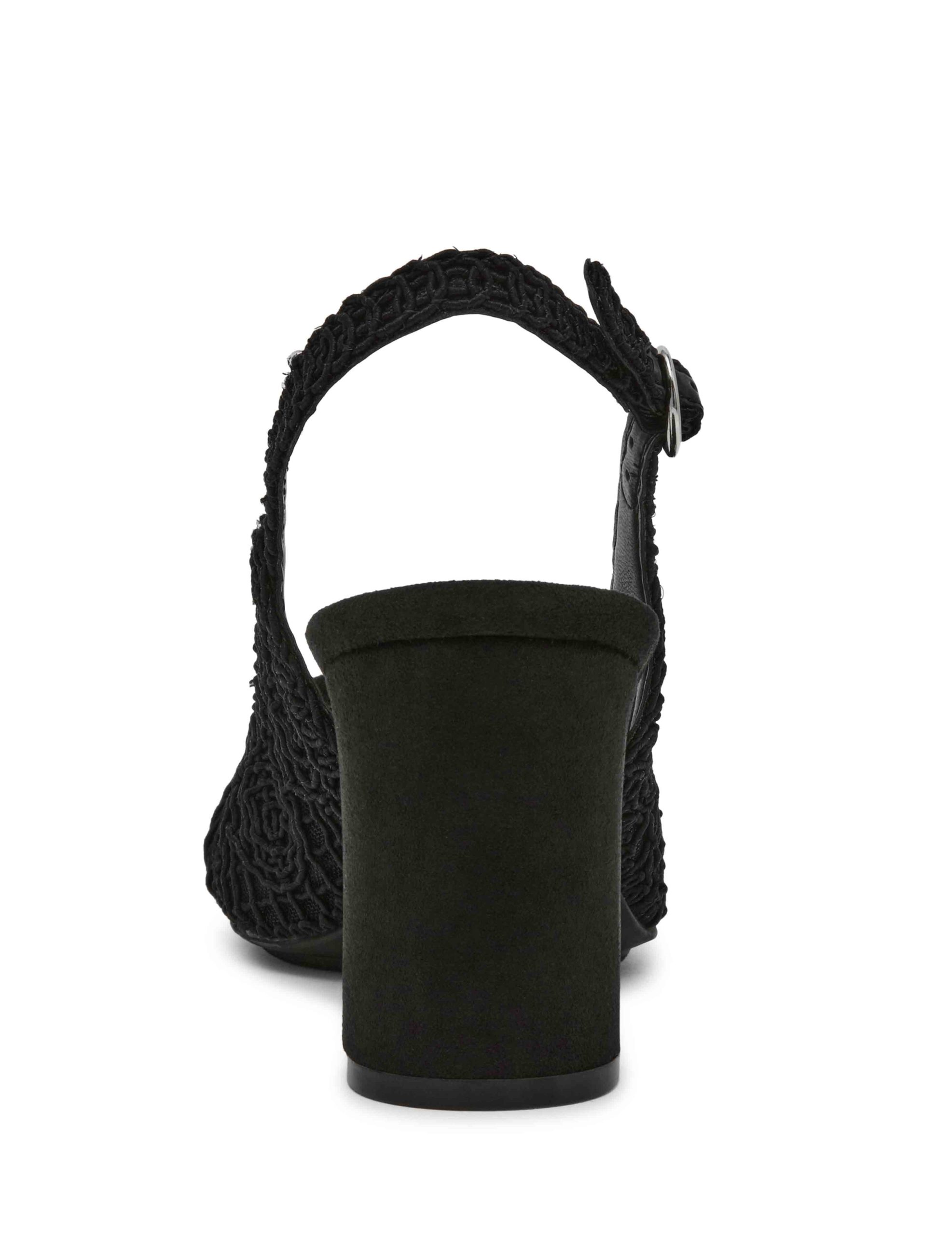 Crochet detailing sling-back pump with the perfect heel height and pointed toe.