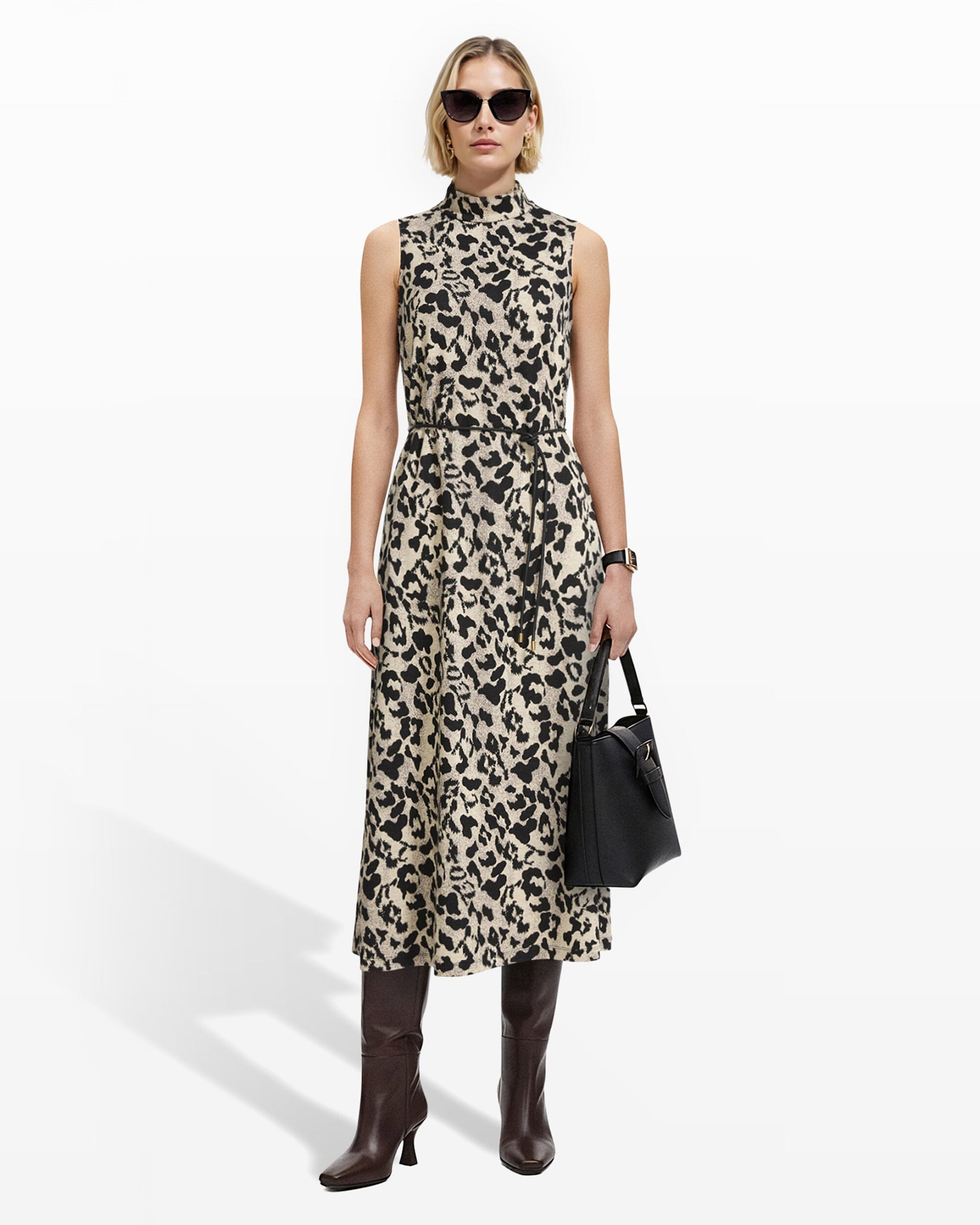 Discover a perfect fusion of sophistication and timeless elegance in our latest offering. This dress exudes an effortless charm, with a mock neck detail that adds a touch of refined grace to your ensemble. Crafted with meticulous attention to detail, it features a belted waist that accentuates your natural silhouette, creating a flattering and polished look. Ideal for any occasion, its versatile design seamlessly transitions from day to night, making it a quintessential addition to your wardrobe. The luxurious fabric drapes beautifully, ensuring both comfort and style in every step.