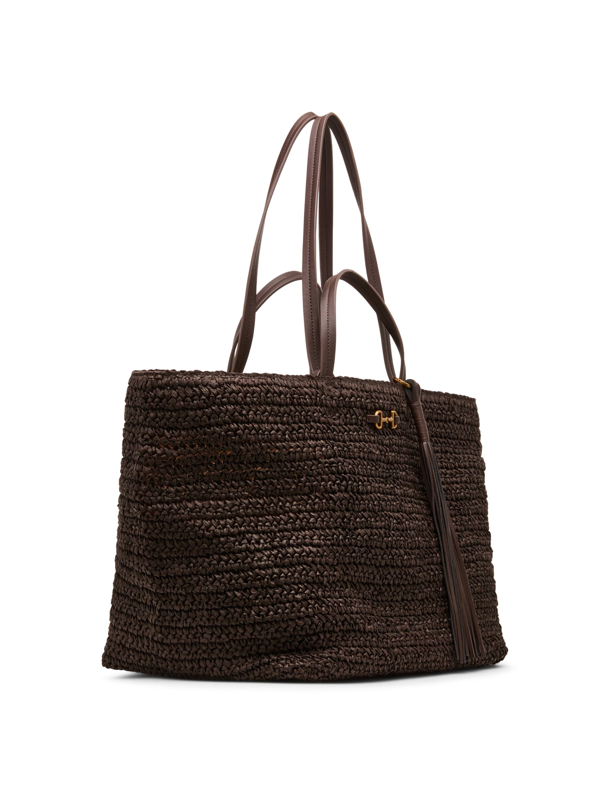 Discover the perfect tote for your on-the-go lifestyle. With its sophisticated horsebit detail and seasonal straw material, this tote offers a refined look for any occasion. Complete with an additional pouch, it ensures you stay effortlessly organized wherever you are.
