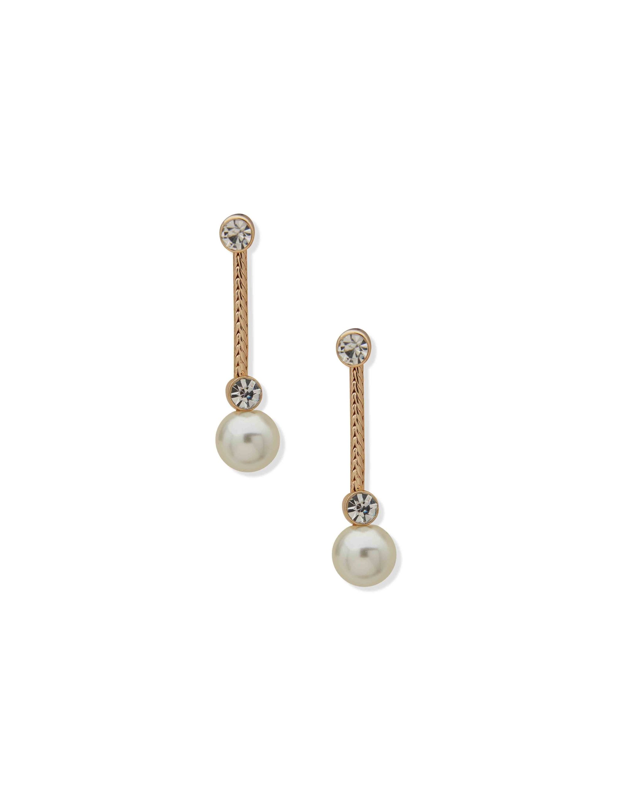 Enhance your sophistication with our linear drop earrings featuring faux pearls and shimmering crystals, the epitome of refined style for any occasion.