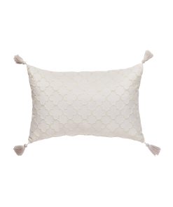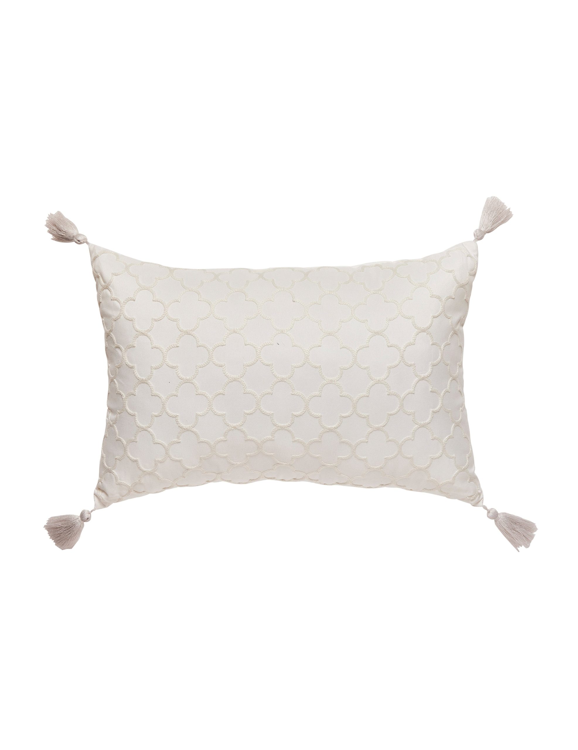 * Decorative pillows feature all-over, crewel-stitched embroidery