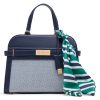 • Two-tone faux leather and canvas construction, structured shape
