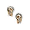 These Mixed Metal Clip On Hoop blend silver and gold creating a layered look, combining two pairs of hoops into one.