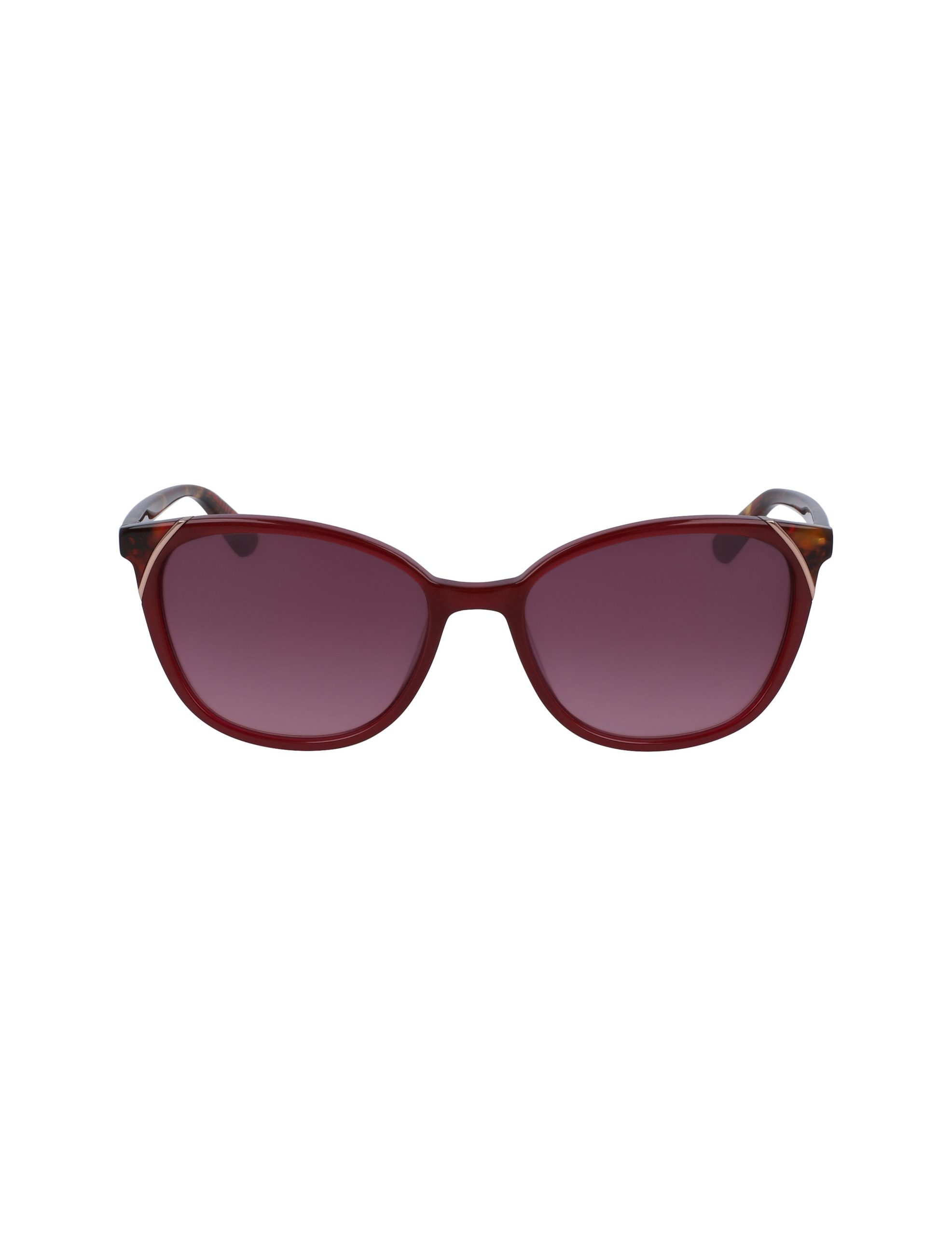 Elevate your eyewear game with a sophisticated twist on a timeless classic. These sunglasses artfully blend a warm crystal merlot frame with exquisite rose gold metal accents, creating an alluring harmony of colors and textures. The rounded cat-eye design is enhanced by red tortoise detailing at the top corners, which continues seamlessly through the temples, offering a touch of modern refinement. Completed with burgundy gradient lenses, these sunglasses not only protect but also enhance your vision with stylish precision. Perfect for the discerning woman who appreciates subtle opulence, these glasses are more than an accessory—they’re a statement of elegance.