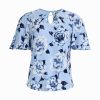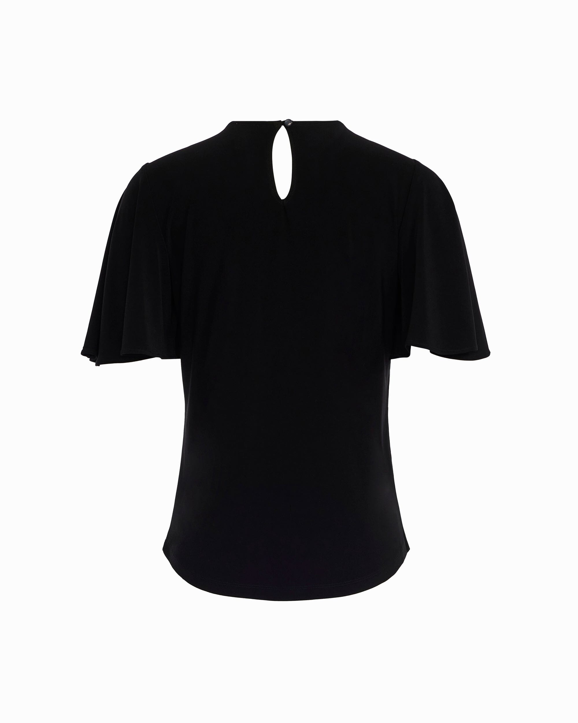 Pleated detailing at the neckline gives this top a refined dimension that sets it apart from standard blouses. The bell sleeves add movement and visual interest without overwhelming the silhouette, creating a polished look that works just as well with trousers as it does with a pencil skirt or favorite jeans.