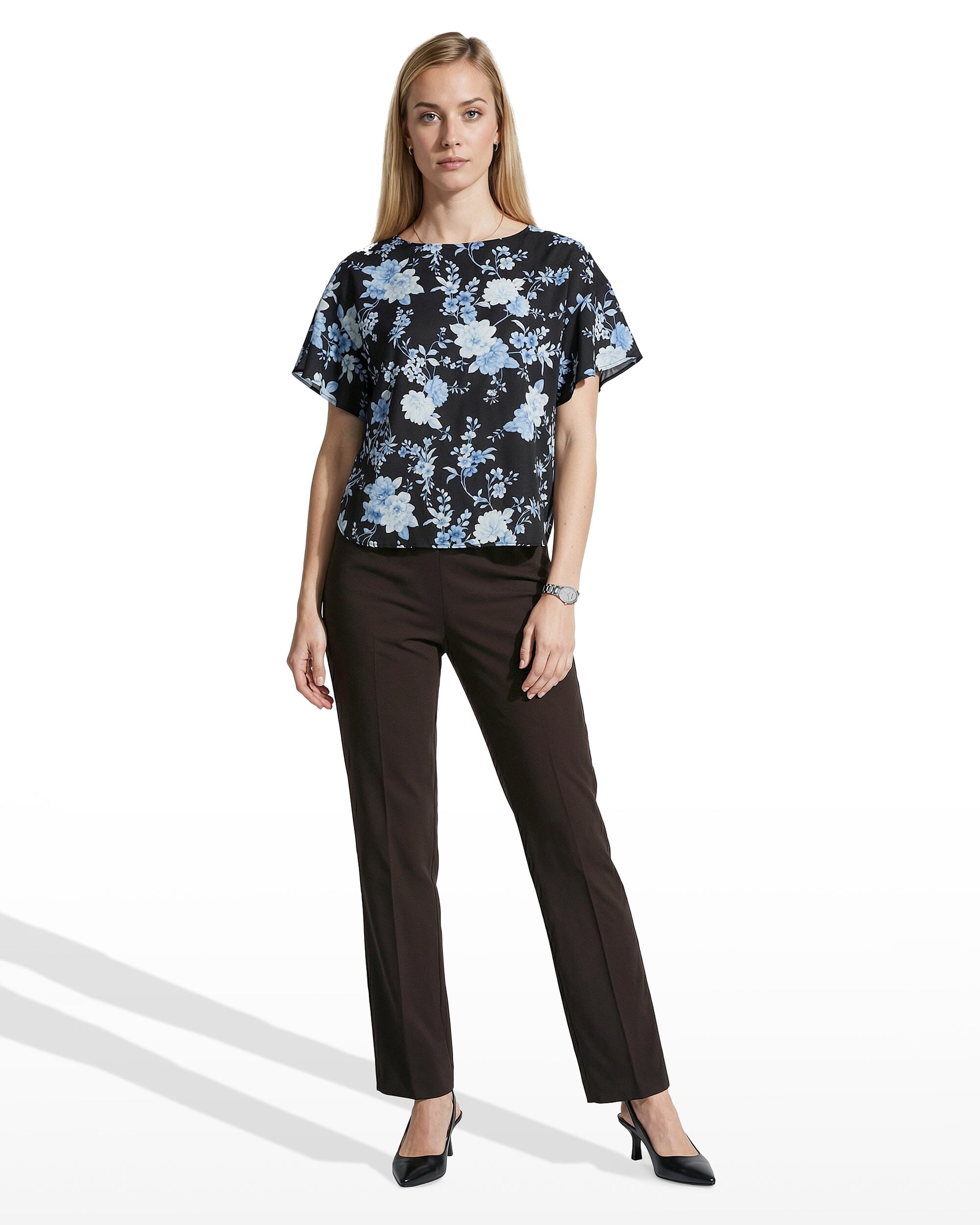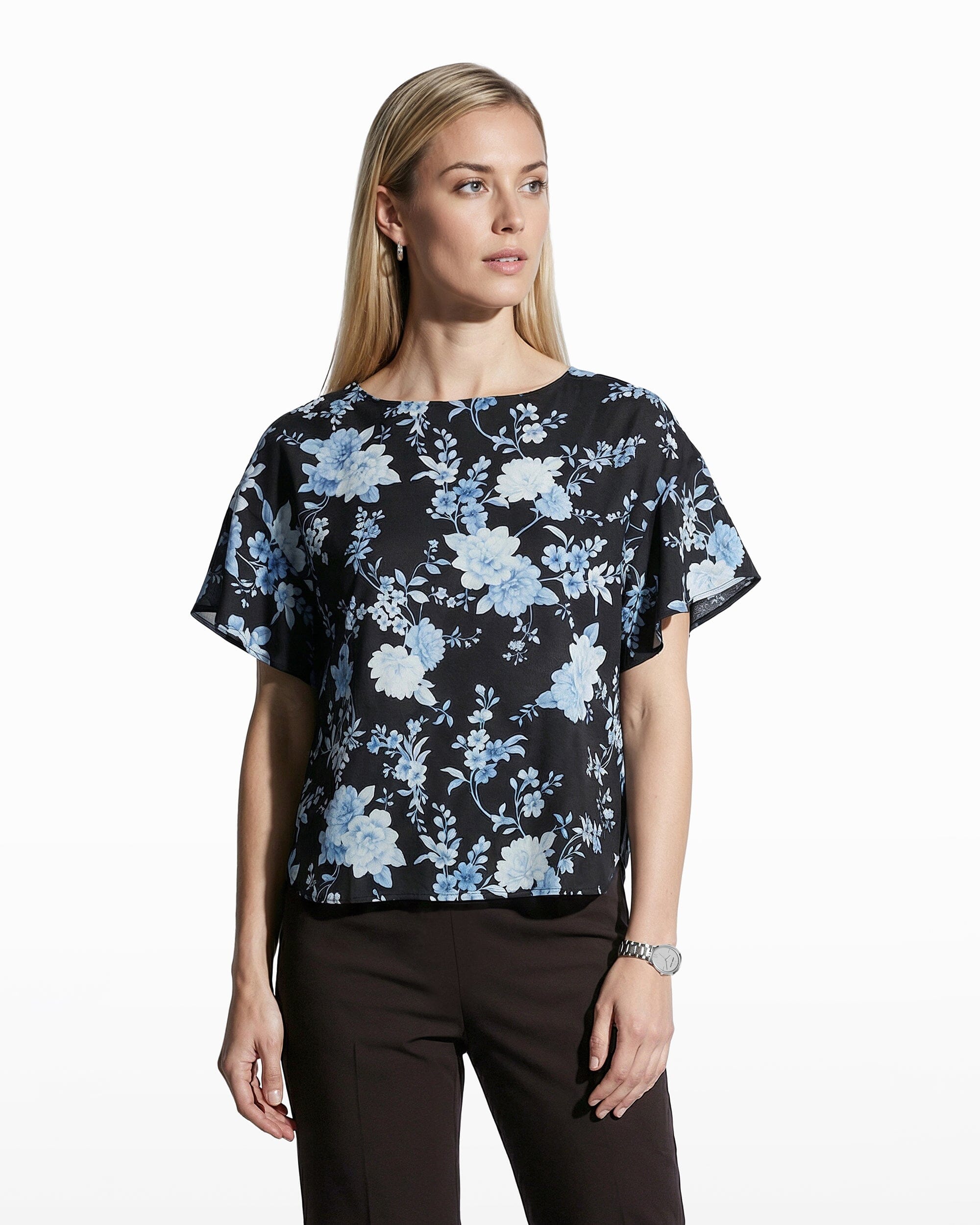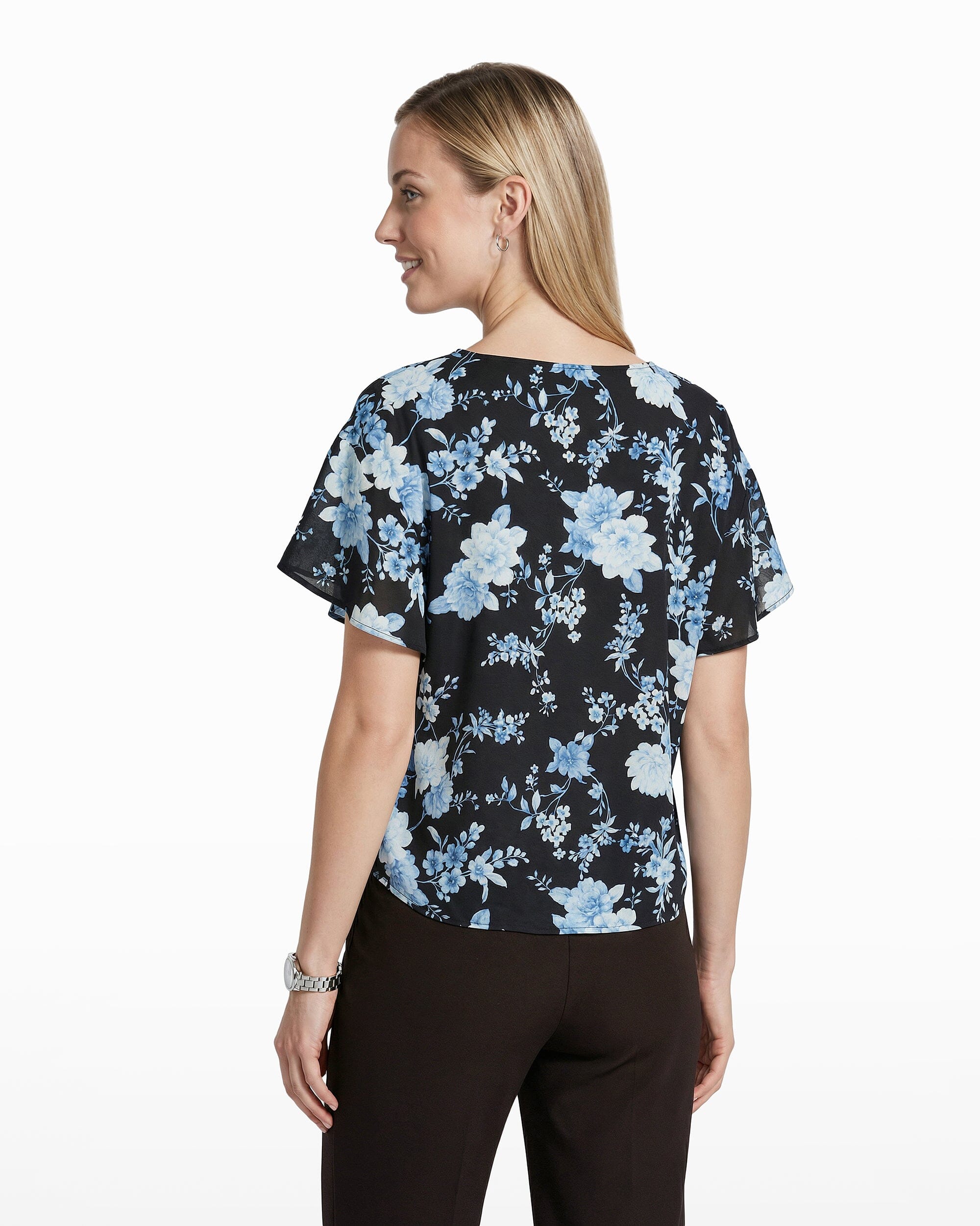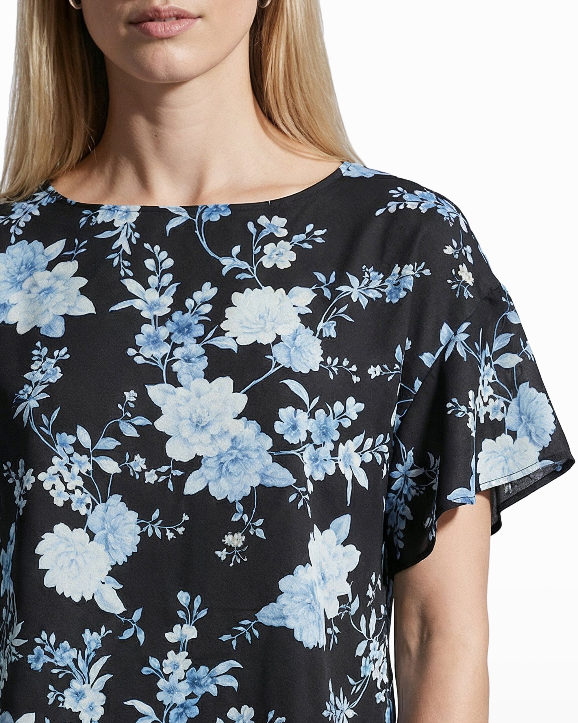 Plus Size Flutter Sleeve Bateau Neck Blouse
