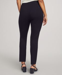 A slim ankle pant cut from a viscose-nylon blend with a pull-on Hollywood waist that lies flat and smooth under any top. The kind of pant that reads tailored at a client meeting or a work lunch without the discomfort of a structured waistband by the end of the day.