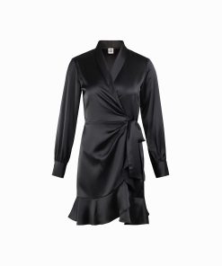 - Faux wrap design offers the illusion of a tailored fit, ensuring effortless elegance.