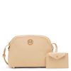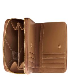 Our small, curved wallet is adorable in size but packed with functionality. It has multiple compartments, each with its own added functions including multiple card slots. Each compartment has individual closures for added security of your financial belongings. This adorable, hand sized wallet features our new placed letter logo.
