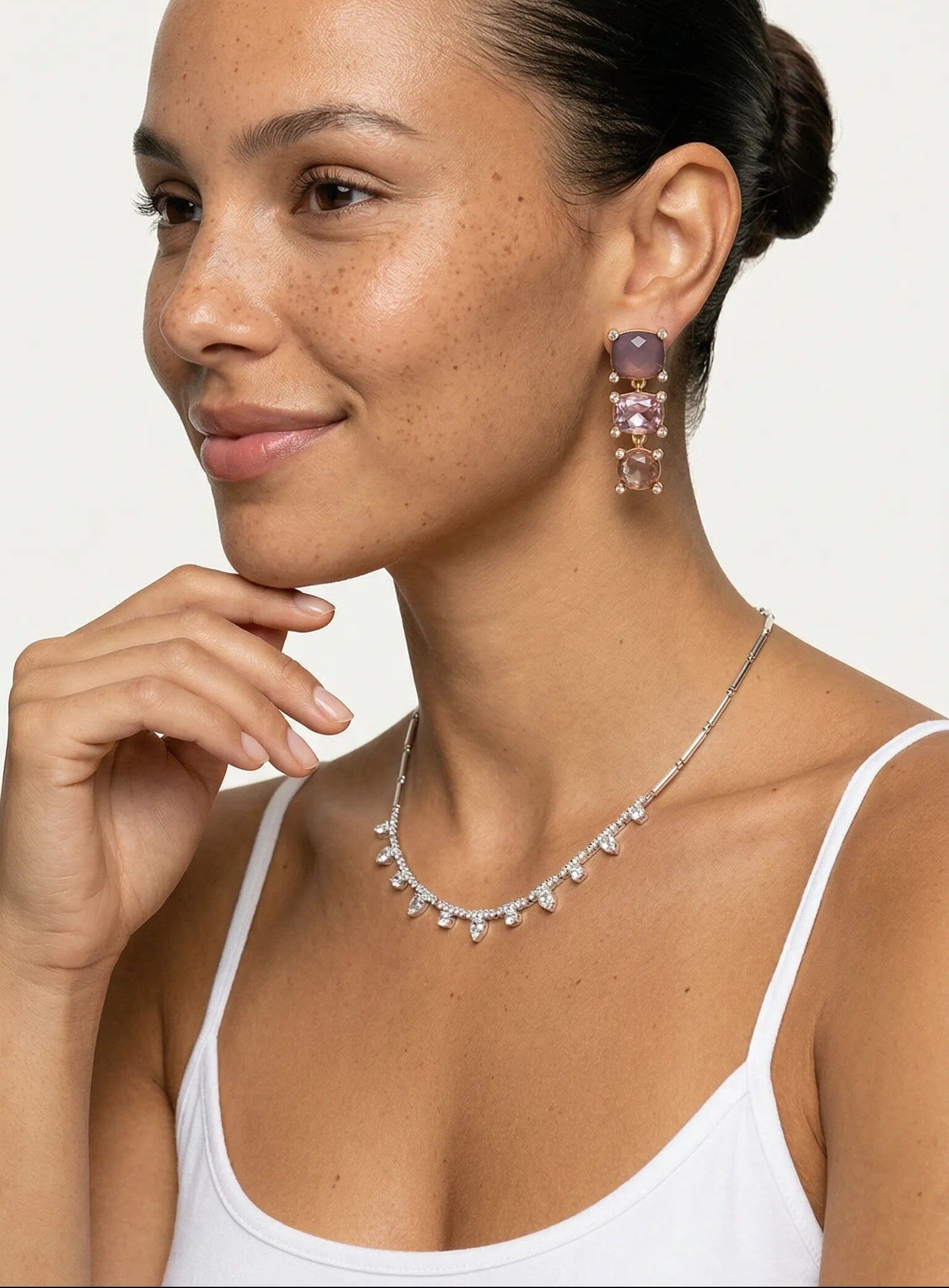 Station Front Necklace – Silver Crystal