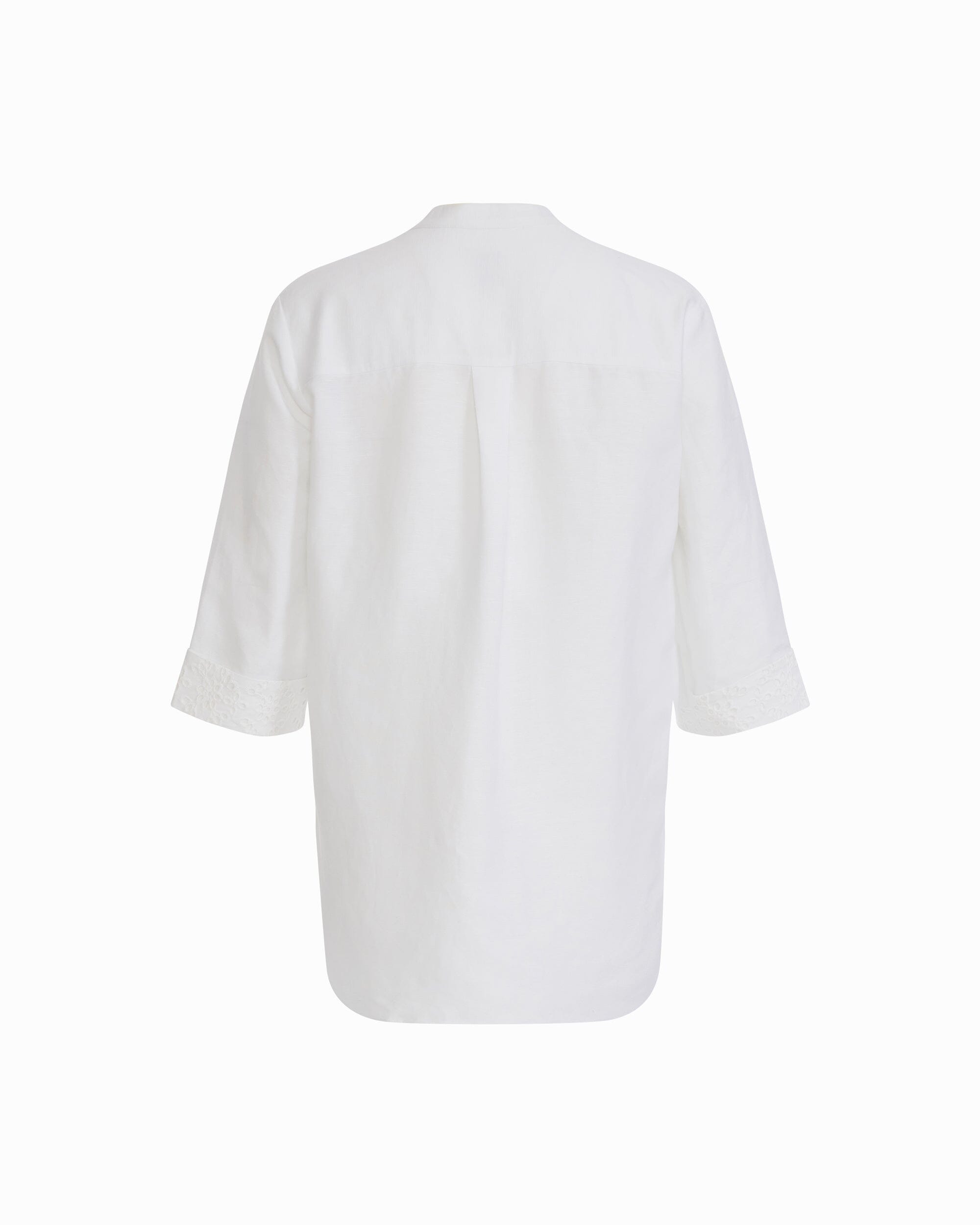 - Three-quarter sleeves hit just below the elbow, keeping the proportions clean and making it easy to push up or leave as-is