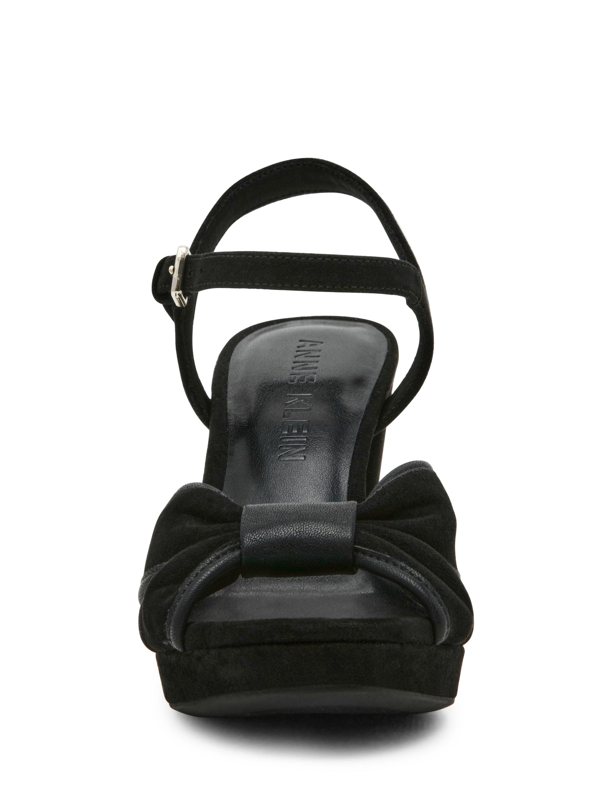 Step into sophistication with Anne Klein’s latest high-heeled sandal, where timeless elegance meets contemporary design. Crafted in luxurious black suede, this refined sandal offers a sleek silhouette that effortlessly enhances any ensemble. Its modern appeal is complemented by a comfortable fit, ensuring that style and practicality walk hand in hand. Whether you’re attending an upscale event or enjoying a leisurely day out, this versatile sandal is your go-to choice for a polished look that commands attention.