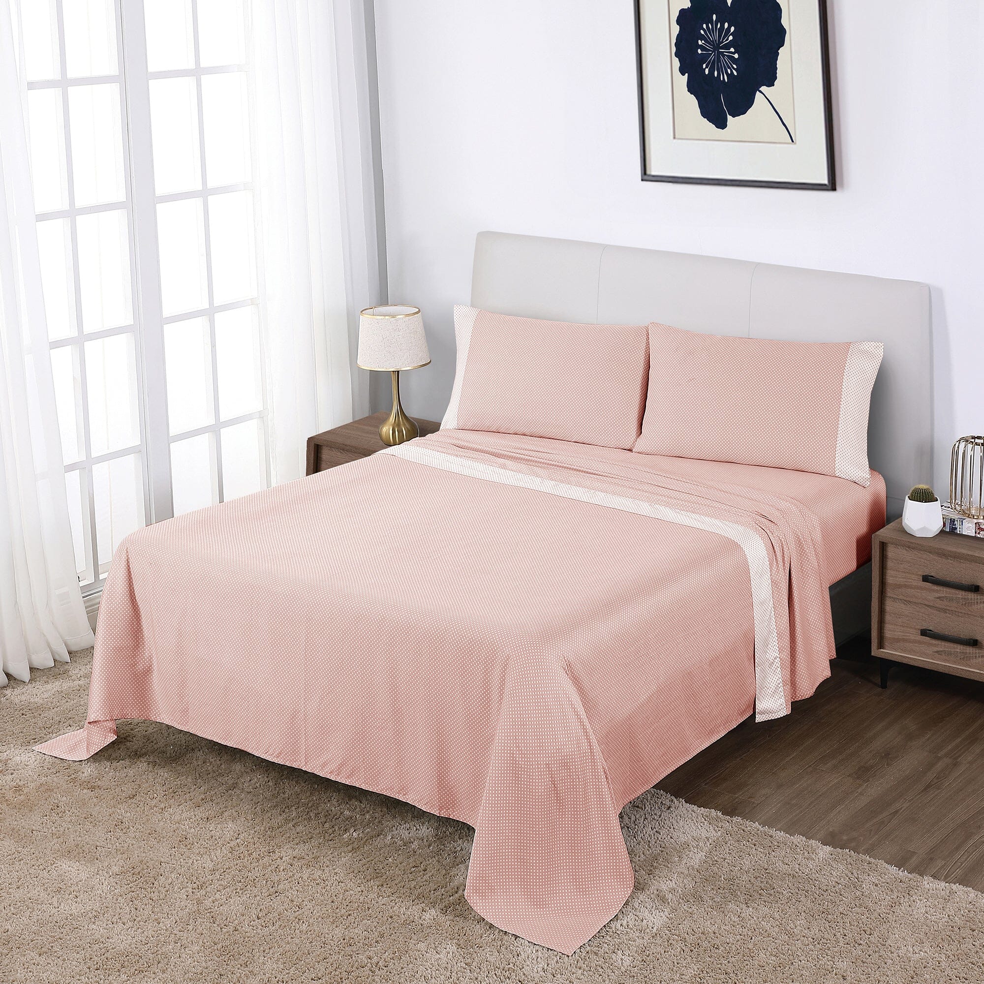 Upgrade your bedding with the Westhill Dot Sheet Set, including a soft flat sheet, an elastic fitted sheet, and matching pillowcases, offering both comfort and style for a restful night’s sleep.